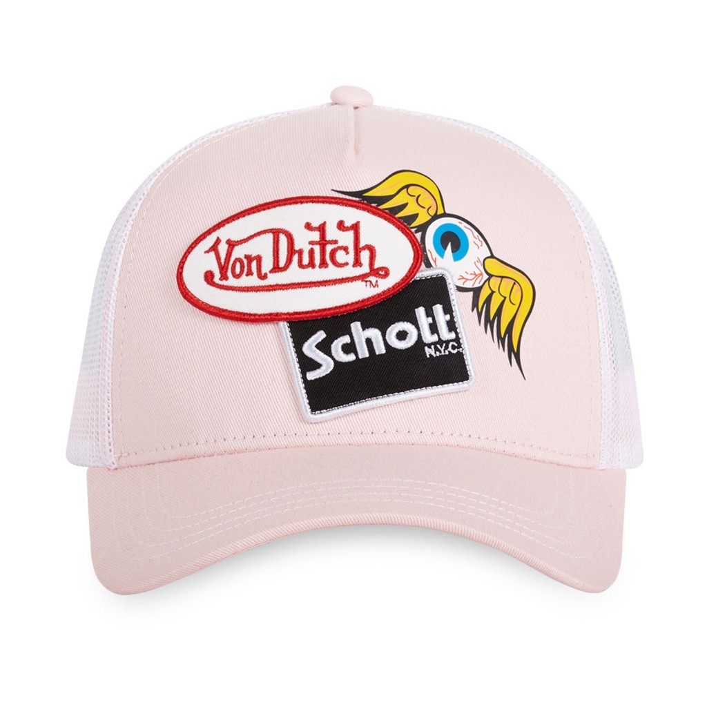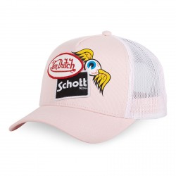 Casquette trucker SCHOTT COLLAB VON DUTCH denim avec bagdes Rose Femme